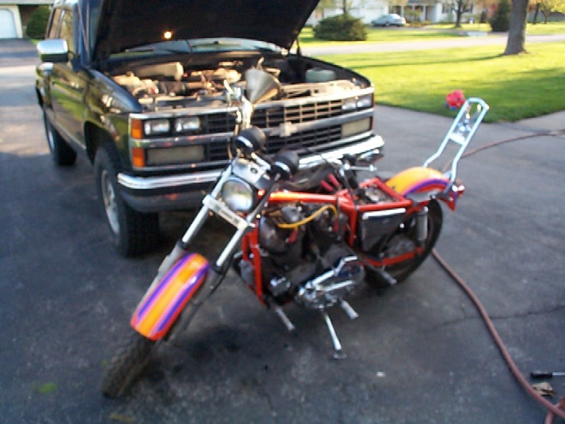 using my truck as a motorcycle battery. Something about a bike with